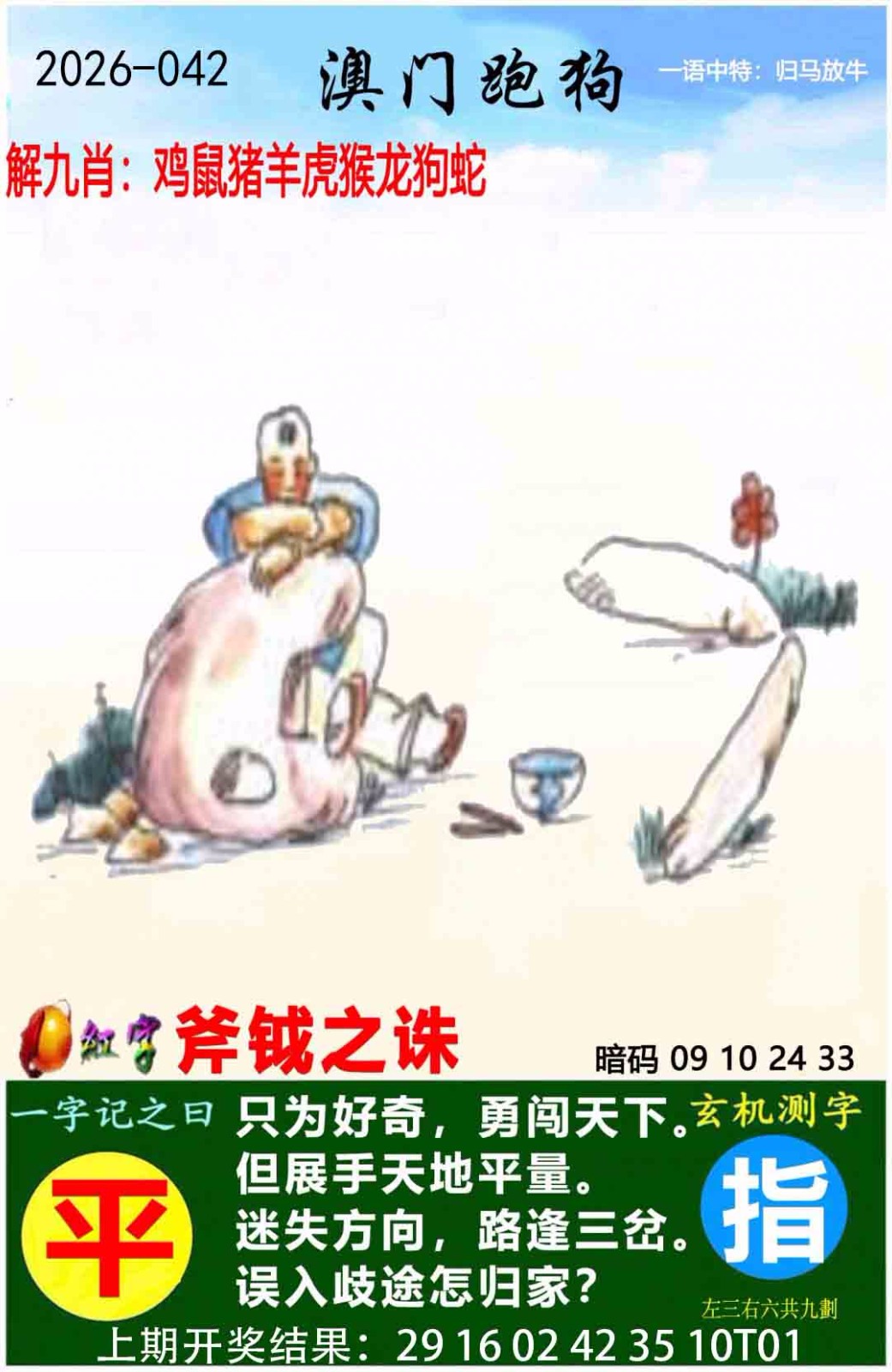 | 042期9肖 | 鸡猴龙牛鼠蛇虎狗羊 |