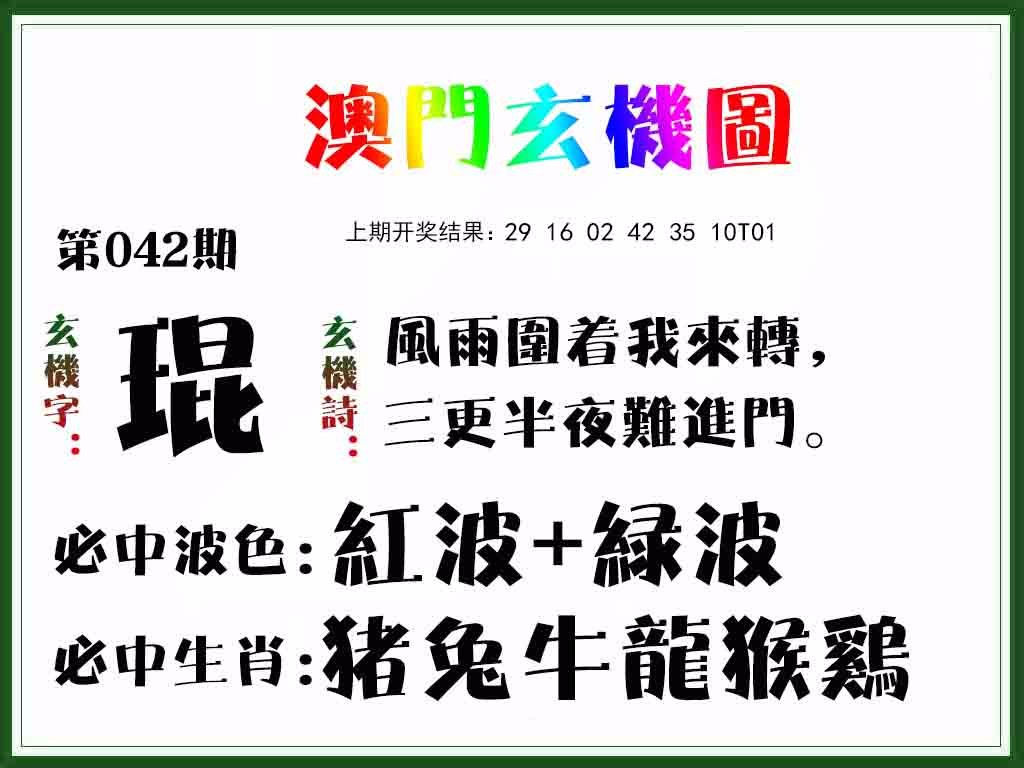 042期绝杀一波[绿波] 开: